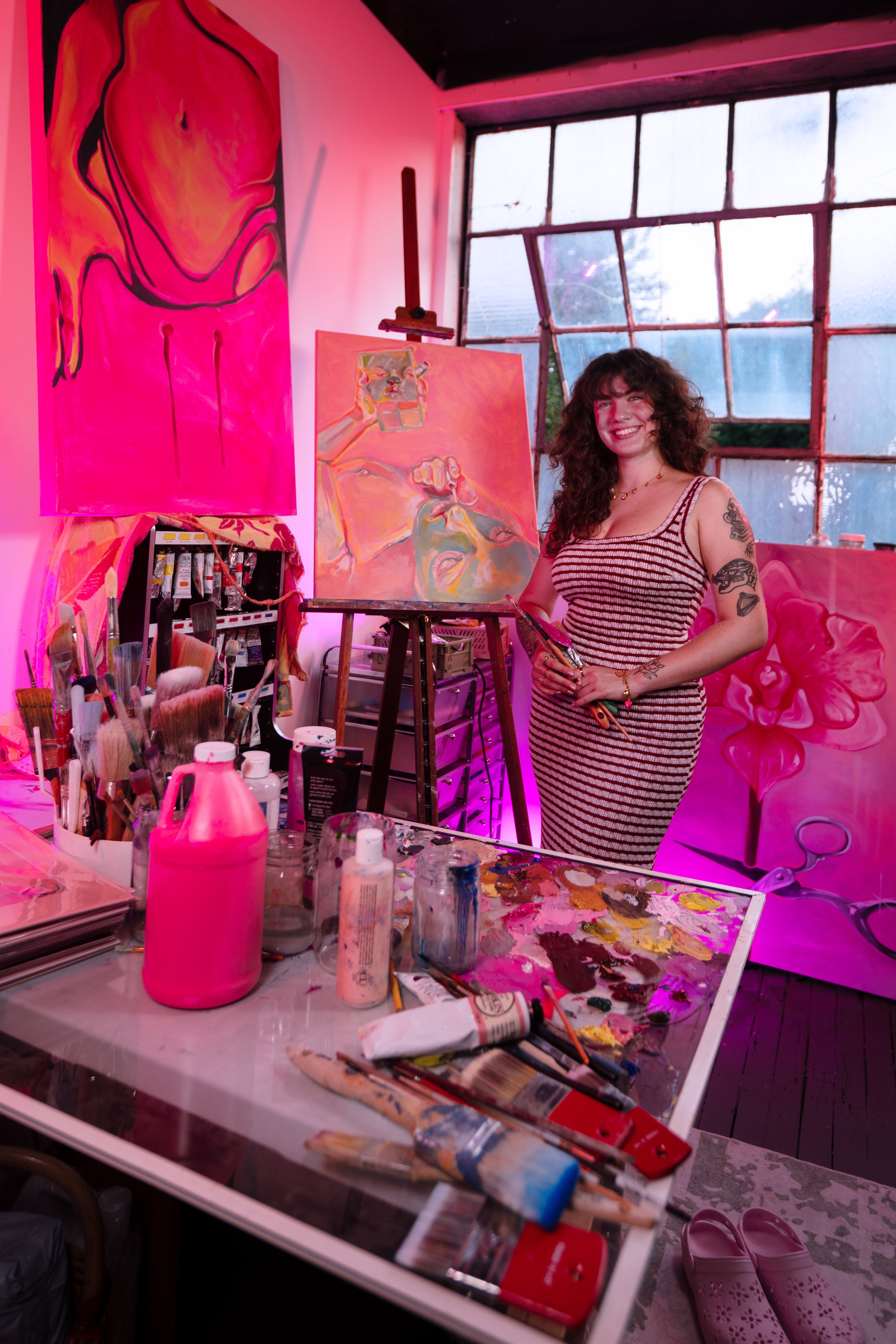 Erin Survilas is a feminist oil painter receiving her Bachelors of Fine Arts from Montserrat College of art in Spring 2025. With her concentration in painting, she also holds minors in curatorial studies, art history, and entrepreneurship. She focuses much of her paintings on ideas of womanhood, femininity, and romanticism. Erin has been a member of the Salem Art Association since 2017, and is currently the Student Liaison Board member.