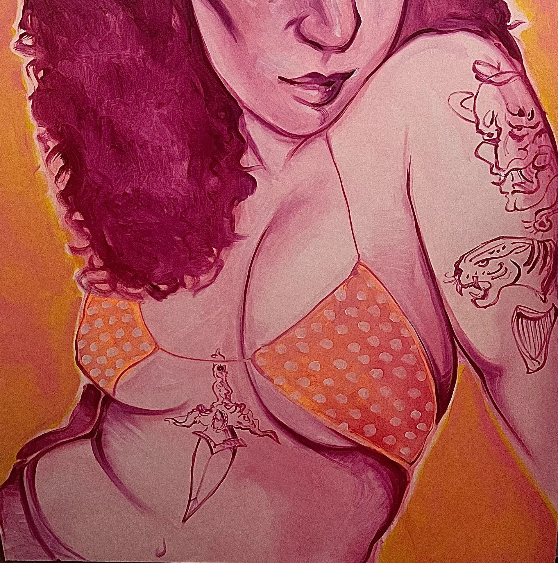 Polka Dot Bikini focuses on how clothing can often bring us confidence and excitement. It also expresses the idea that clothes should fit ur bodies, and not the other way around.