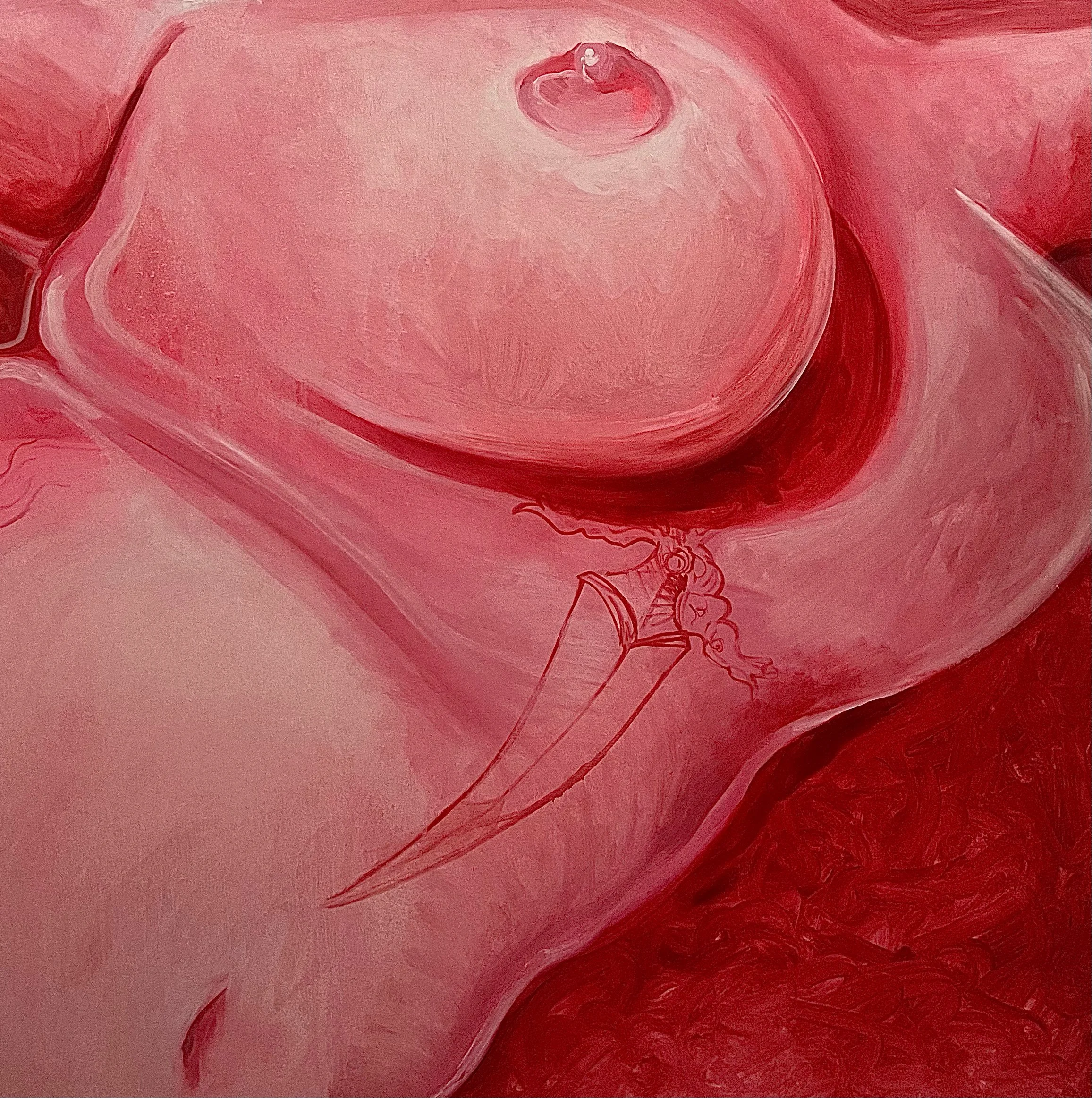 The Flop references many of Jenny Saville's paintings of the female body in a normal (yet thought to be grotesque) fashion. It shows the rolls of fat, the way the breast falls, and stretch marks and how normal they are.